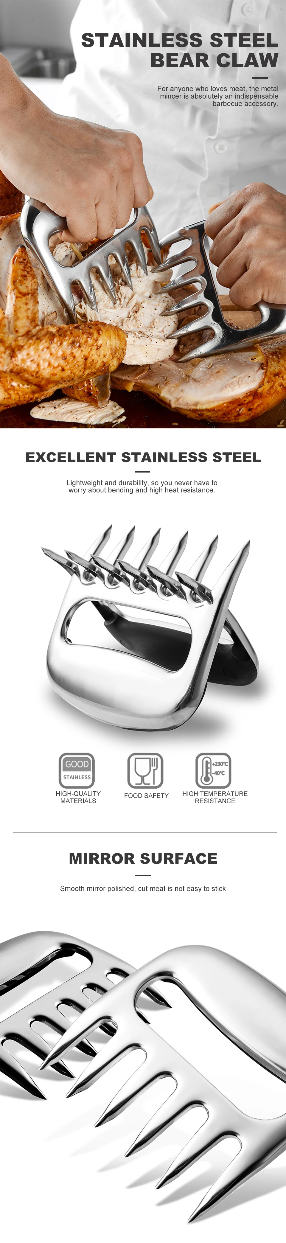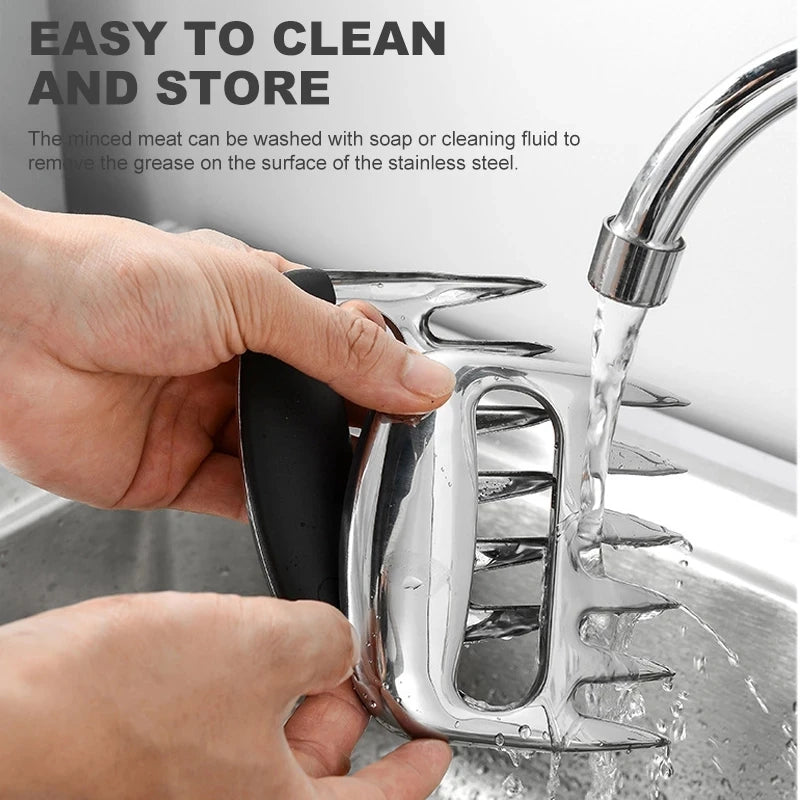 Su diseño afilado y curvado permite desgarrar fibras gruesas de carne en segundos, logrando un desmenuzado perfecto sin necesidad de cuchillos. Ideal para preparar pulled pork, brisket o pollo desmenuzado con la eficiencia de un chef profesional.