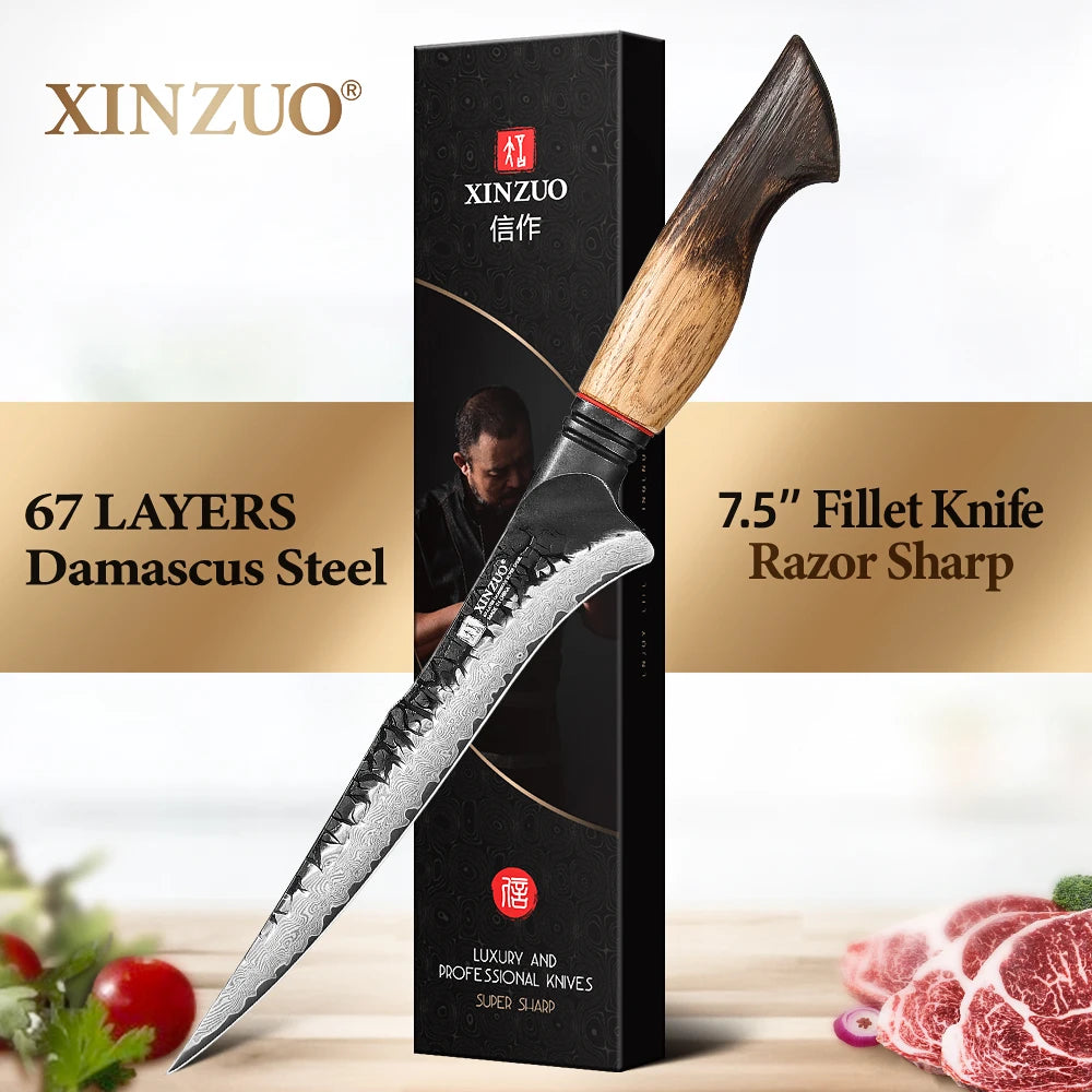 • Hoja forjada en 67 capas de acero Damasco con afilado japonés