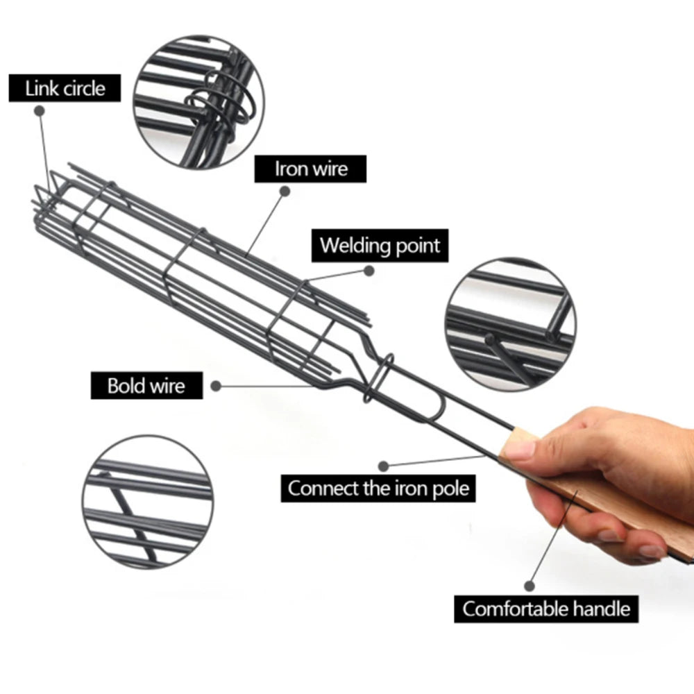 El mango aislante de madera te permite girar la cesta sin acercarte al calor de la parrilla. Cocinas con seguridad, sin quemaduras y con un control perfecto de cada movimiento.