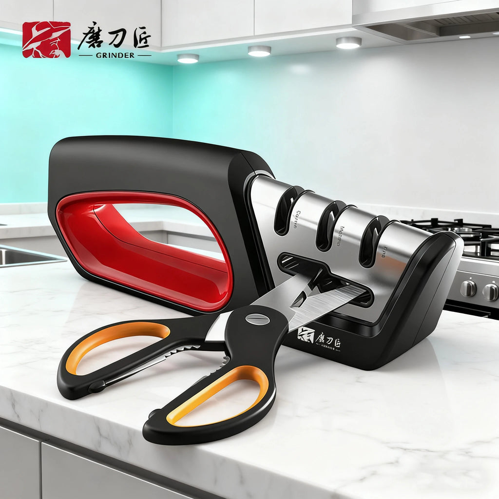 4-in-1 Knife & Scissors Sharpener, Professional Tool to Restore & Polish Blades, Ergonomic Non-Slip Grip, Kitchen Sharpening Kit