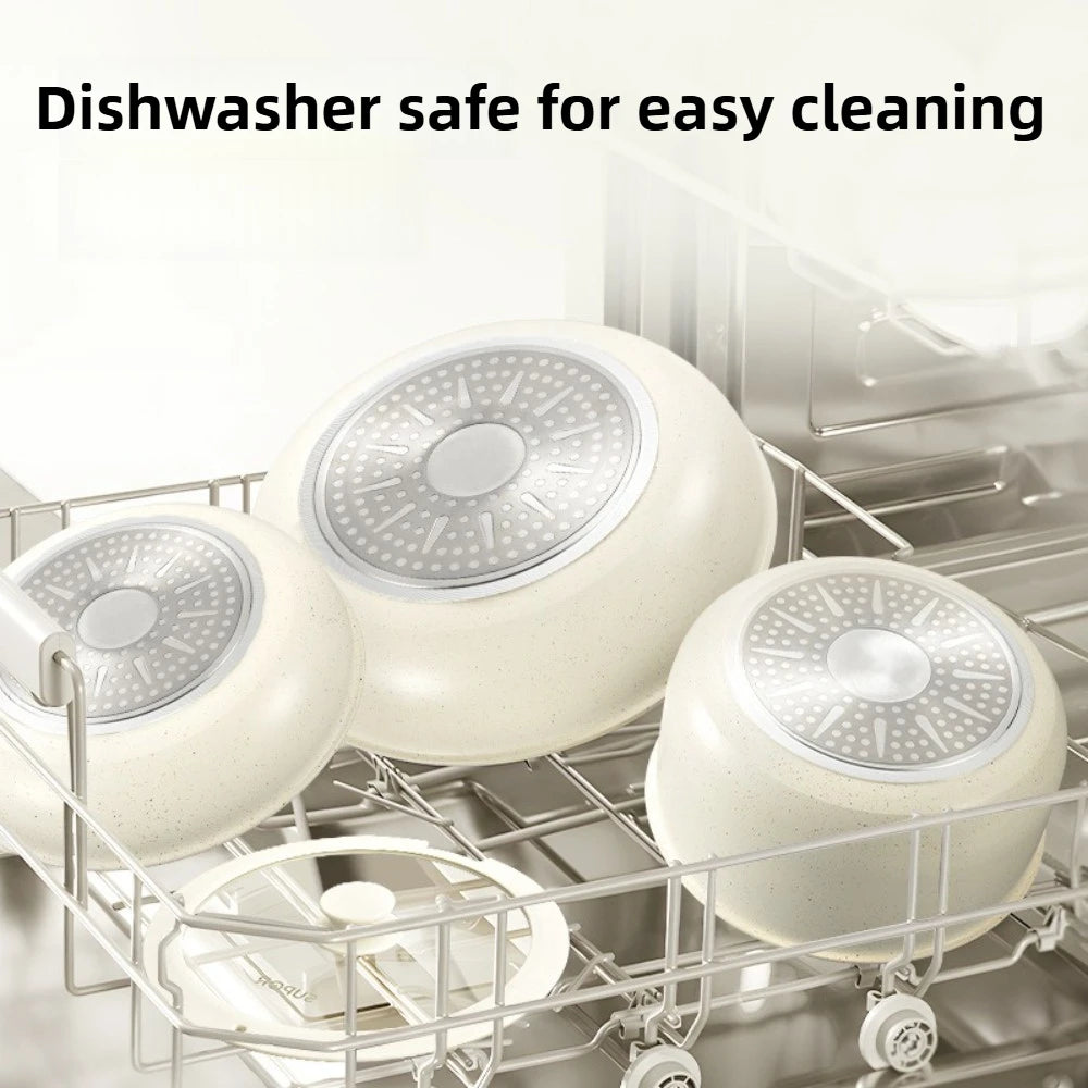 Su diseño apilable permite guardar el set en un solo espacio compacto, ideal para cocinas pequeñas o para quienes buscan mantener todo en orden sin sacrificar calidad ni funcionalidad.