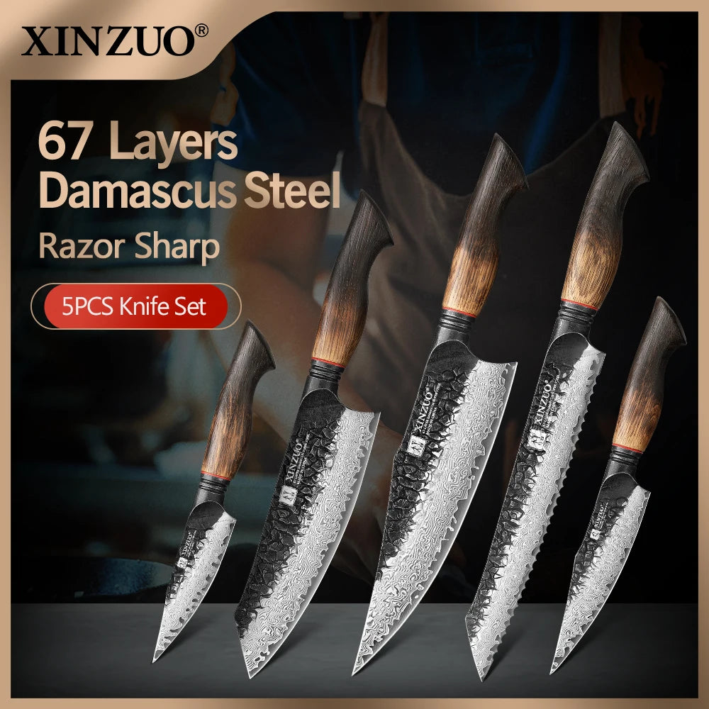 XINZUO Mo Series 5-piece Damascus Steel Knife Set